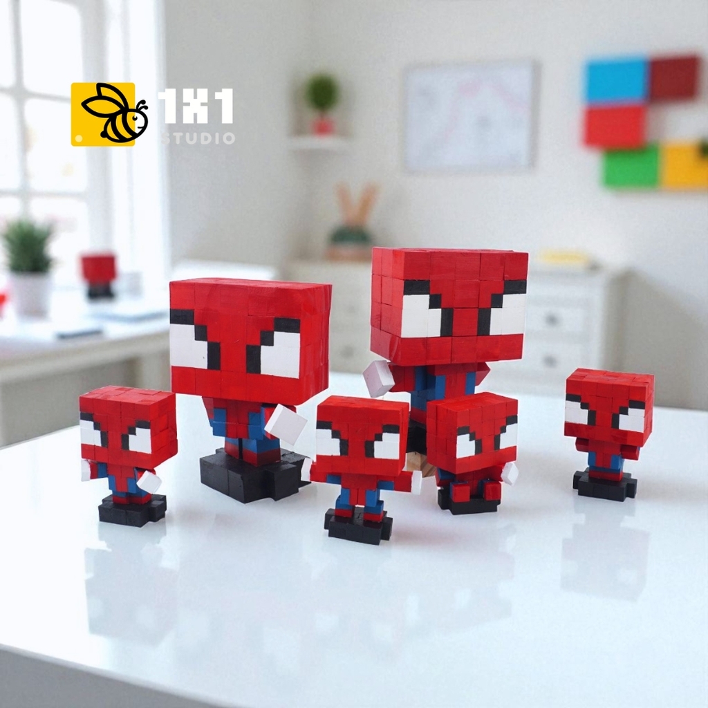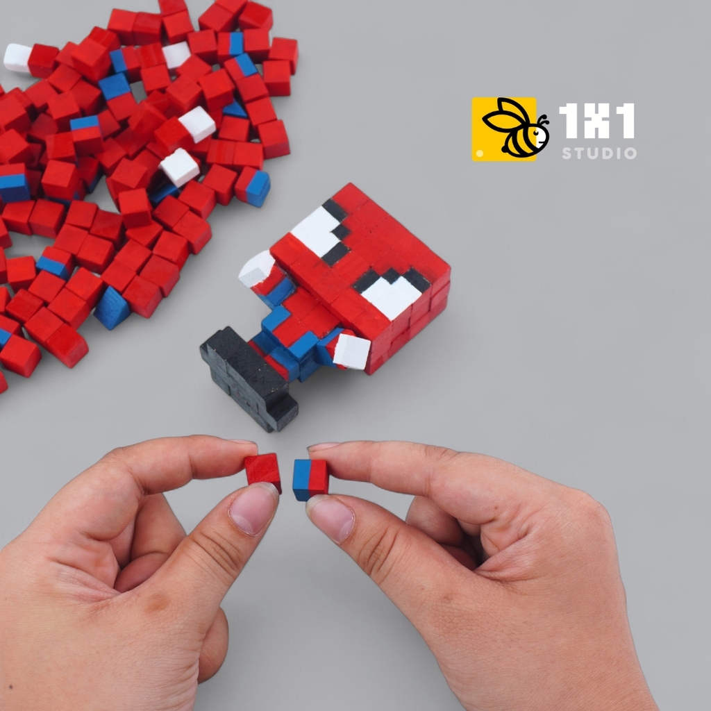 Bộ Lắp Ghép 2 Mô Hình Người Nhện Spider-Man THU NHỎ (sử dụng gỗ nhỏ 1x1x1 cm đã tô sẵn) là sản phẩm thuộc dòng LẮP GHÉP GỖ của 1x1 Studio. Sản phẩm cho phép bạn lắp ghép 2 mô hình trong 4 mẫu gợi ý.