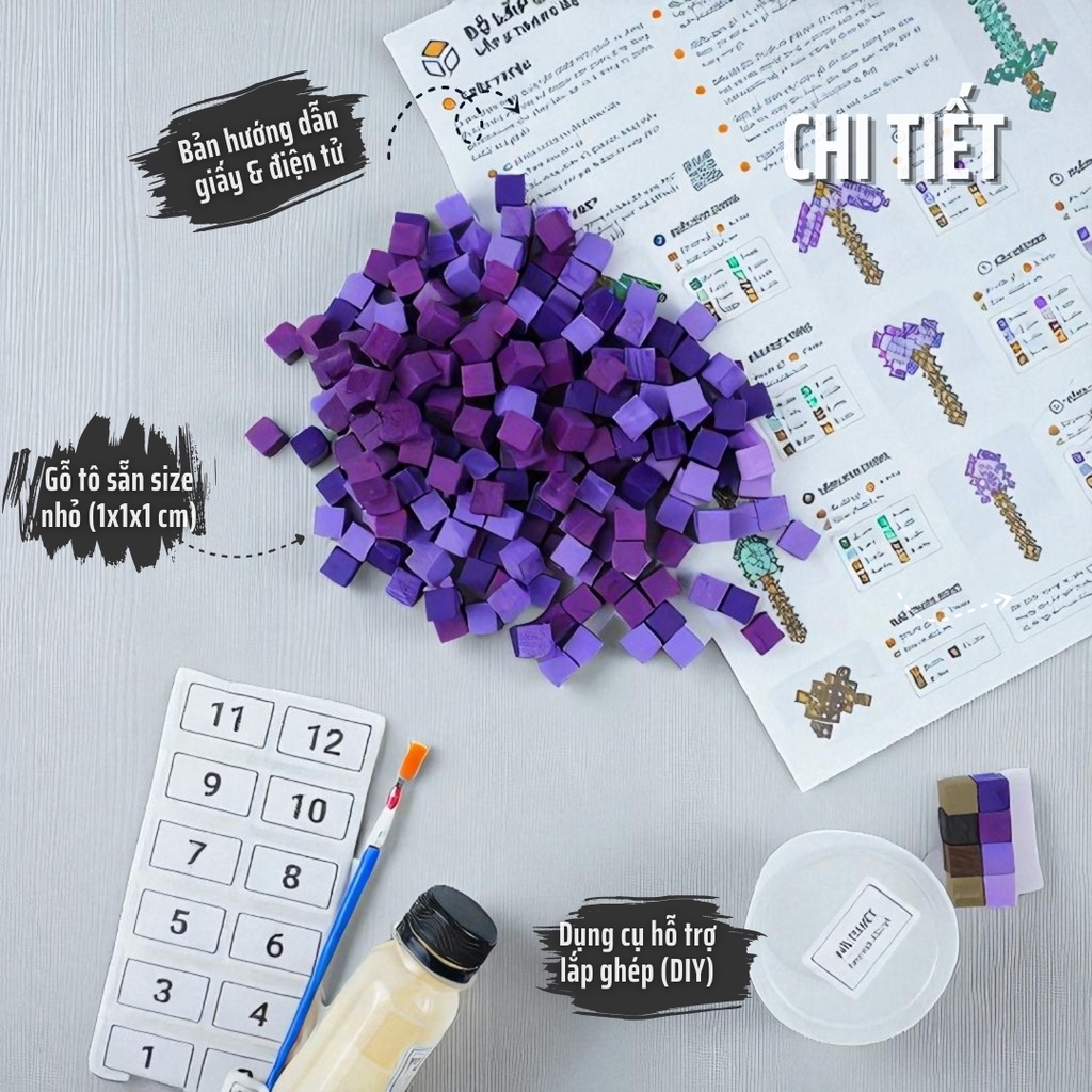 ❏ Bộ gỗ nhỏ (1x1x1 cm) đã tô màu sẵn
