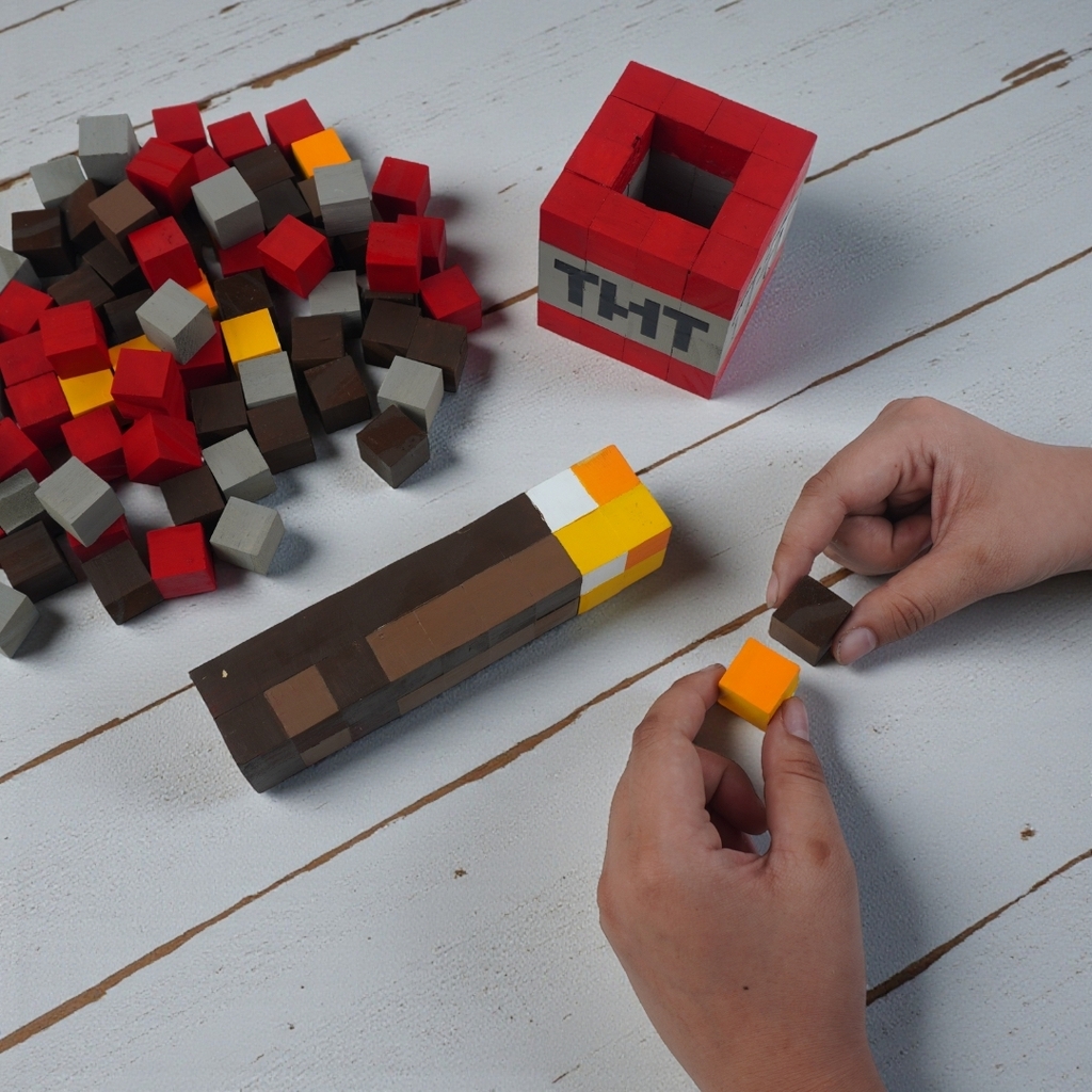Bộ Lắp Ghép Mô Hình Gỗ Minecraft Đuốc (Torch) và Khối TNT là sản phẩm thuộc dòng LẮP GHÉP GỖ của 1x1 Studio. Sản phẩm lắp ghép được 2 mô hình Đuốc và Khối TNT cùng lúc.