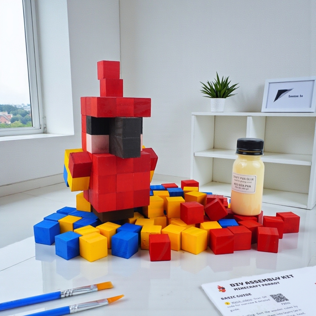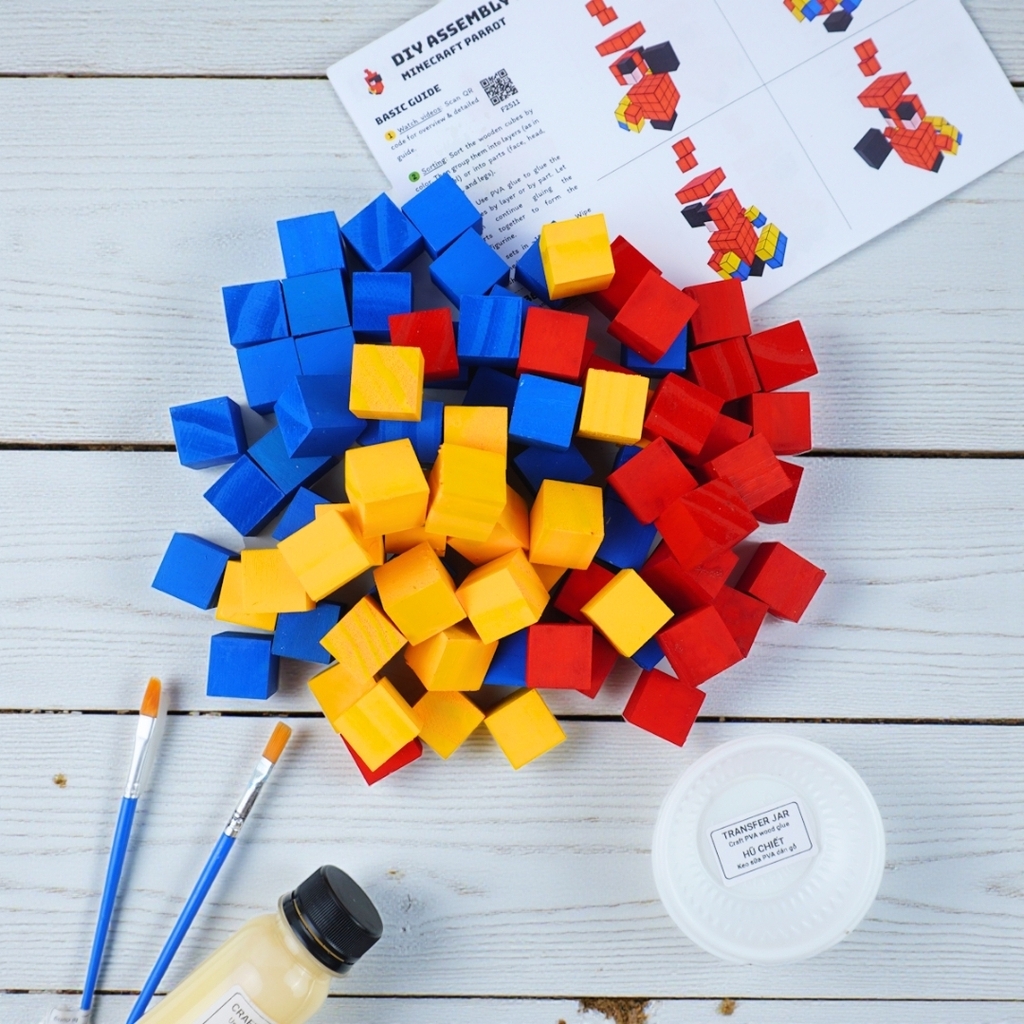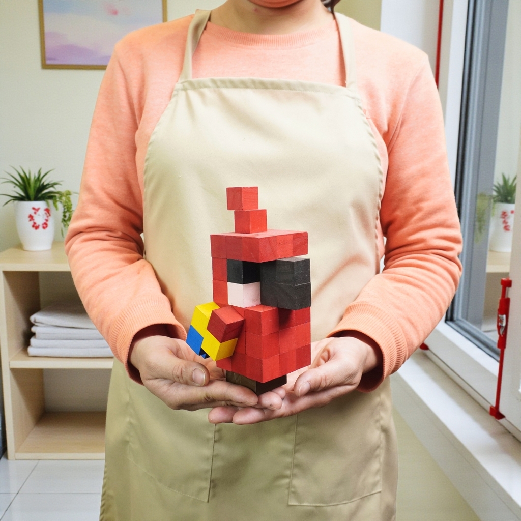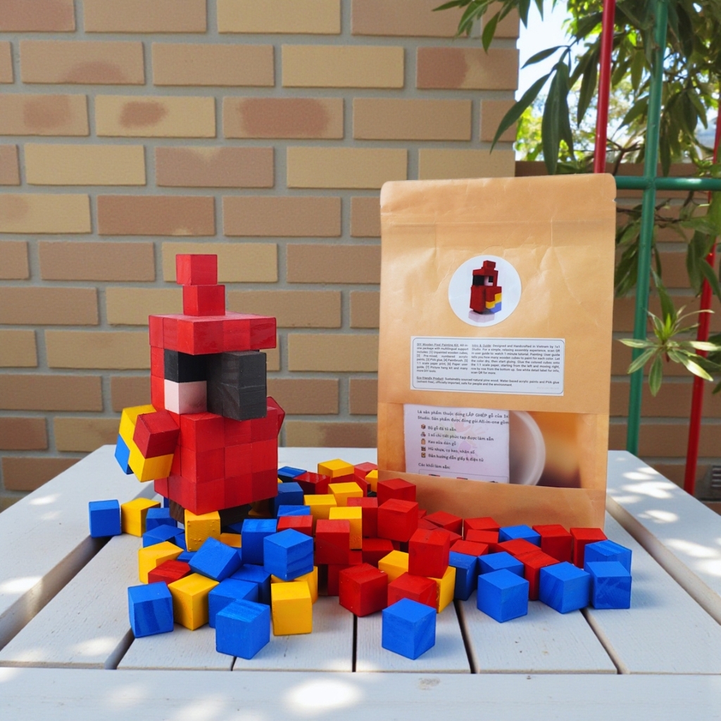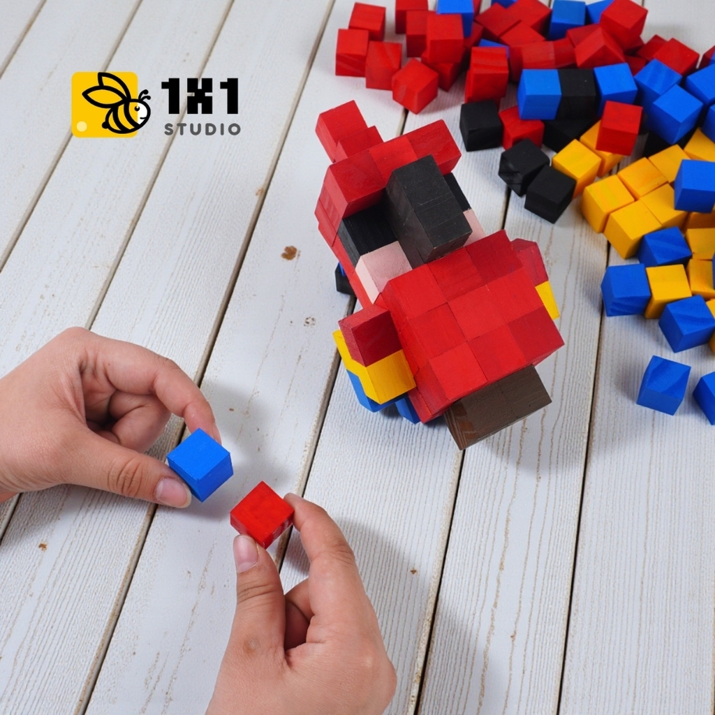 Bộ Lắp Ghép Mô Hình Gỗ Minecraft Parrot Vẹt (sử dụng gỗ lớn 2x2x2 cm đã tô sẵn) là sản phẩm thuộc dòng LẮP GHÉP GỖ của 1x1 Studio.