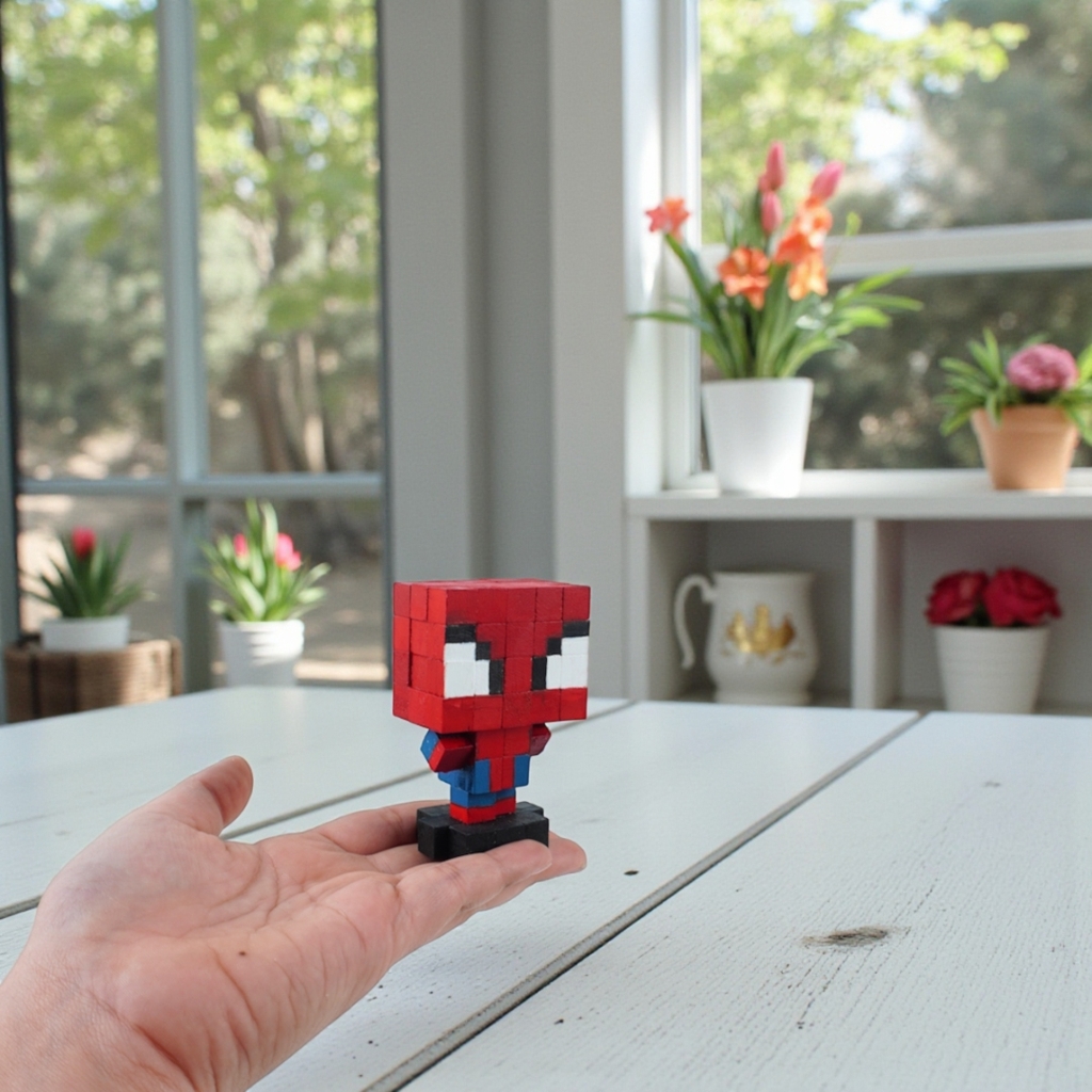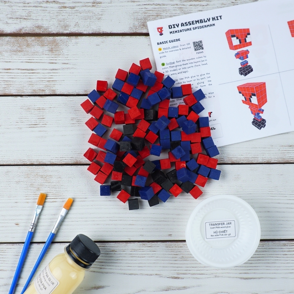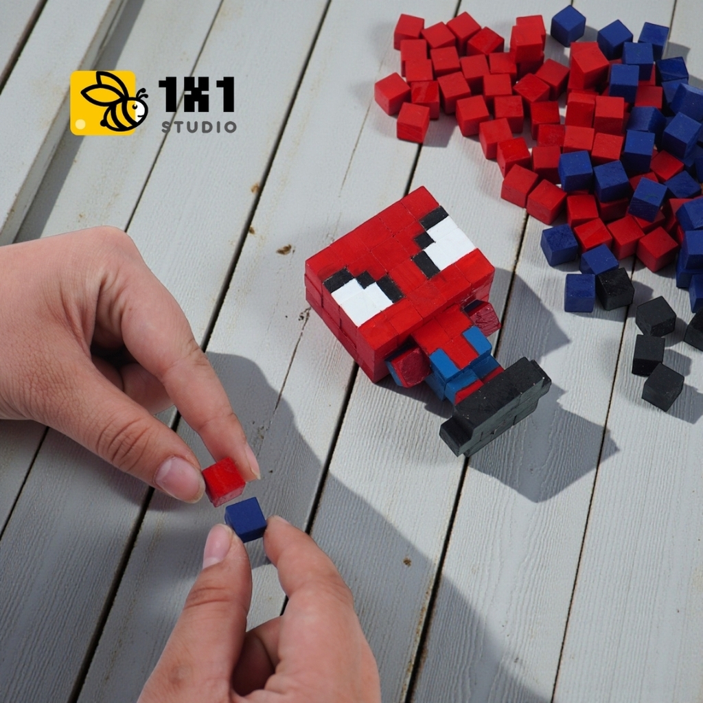 Bộ Lắp Ghép Mô Hình Gỗ Nhân Vật Người Nhện Spider-man THU NHỎ (sử dụng gỗ nhỏ 1x1x1 cm đã tô sẵn) là sản phẩm thuộc dòng LẮP GHÉP GỖ của 1x1 Studio.