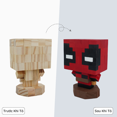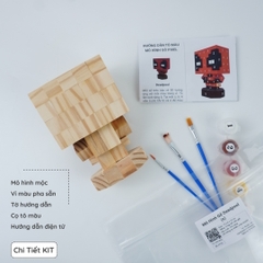 DIY Kit Tô Màu Mô Hình Gỗ Deadpool được sản xuất thủ công bởi Xưởng 1x1. Sản phẩm gồm mô hình mộc, màu pha sẵn, cọ. Người dùng dễ dàng hoàn thiện sản phẩm với bản hướng dẫn bằng giấy hoặc trải nghiệm thú vị như chơi game với bản hướng dẫn điện tử xoay 360°.