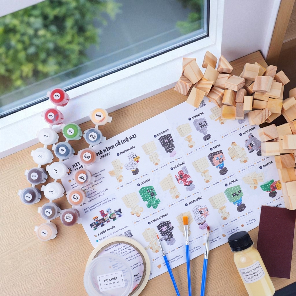 KIT Tự Làm 2 Mô Hình Gỗ Chủ Đề Minecraft (sử dụng gỗ to 2x2x2 cm) là sản phẩm thuộc dòng STEAM DIY, được sản xuất thủ công bởi 1x1 Studio. Sản phẩm cho phép bạn tạo ra 2 mô hình Minecraft trong 12 mẫu, chỉ với 2 bước DIY: lắp ghép gỗ và tô màu gỗ.