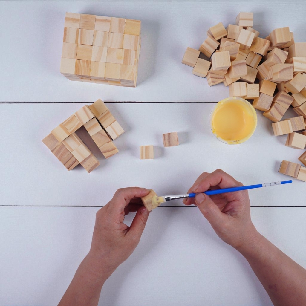 Việc sử dụng gỗ to (2x2x2 cm) thay vì gỗ nhỏ (1x1x1 cm) giúp mô hình sau khi hoàn thành to hơn, nhìn đã hơn, đầu tư hơn, phù hợp không gian rộng, tủ trưng bày.
