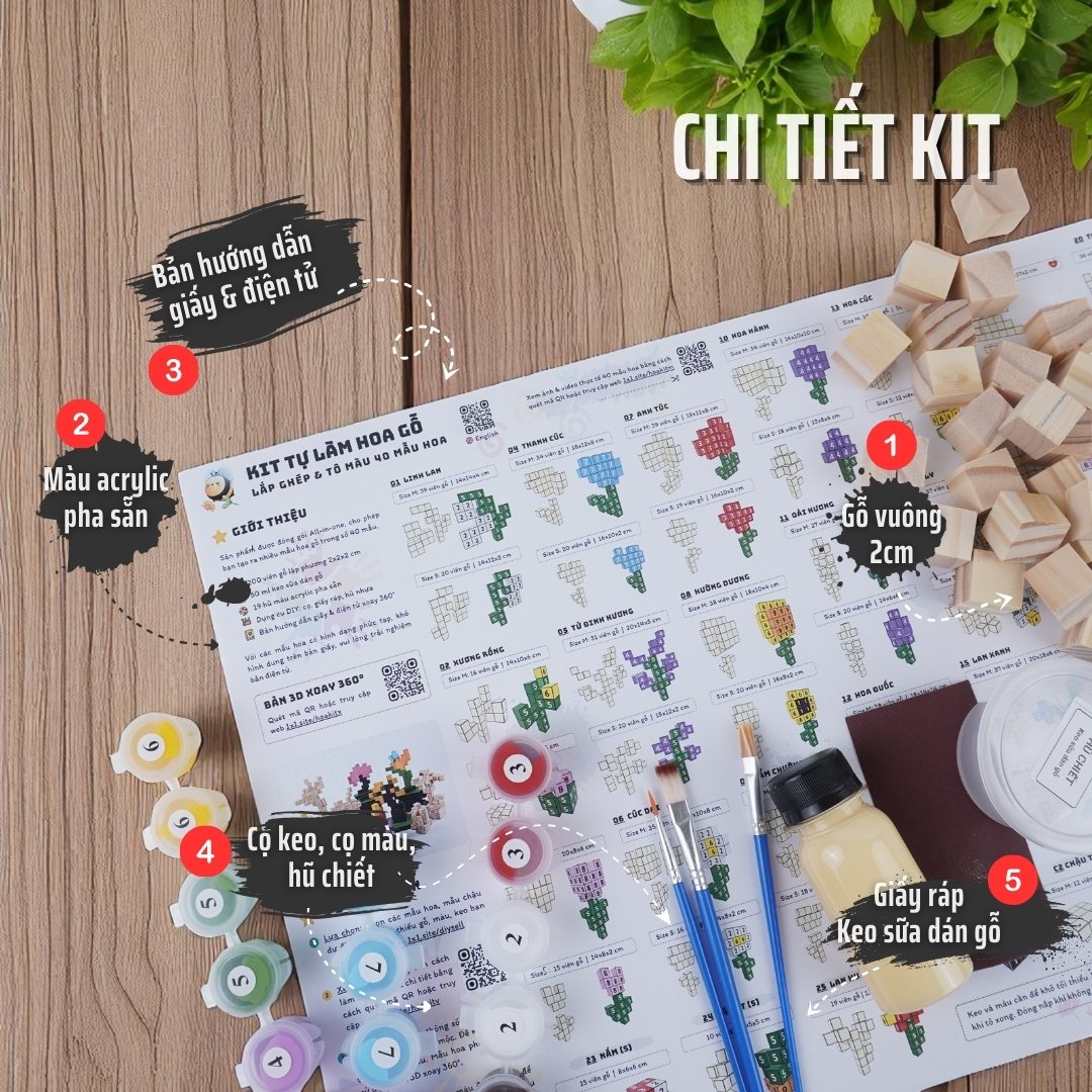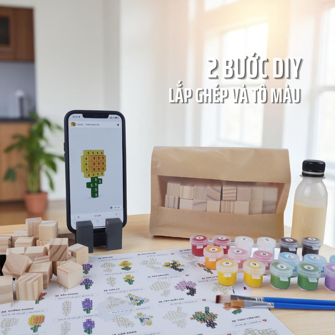 KIT Tự Làm Mô Hình là sản phẩm đòi hỏi bạn 2 kĩ năng: Lắp Ghép & Tô Màu. Sản phẩm được đóng gói All-in-one gồm: bộ gỗ mộc, màu đã pha sẵn, keo sữa, bản hướng dẫn giấy và điện tử. Trải nghiệm tô sẽ thú vị và trực quan hơn với bản hướng dẫn điện tử xoay 360°. Xem Video hướng dẫn để hiểu hơn sản phẩm.
