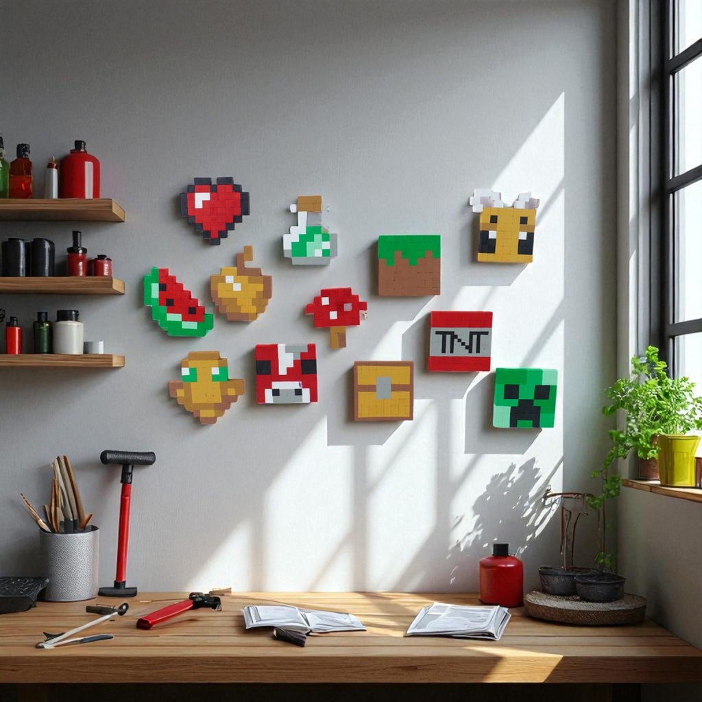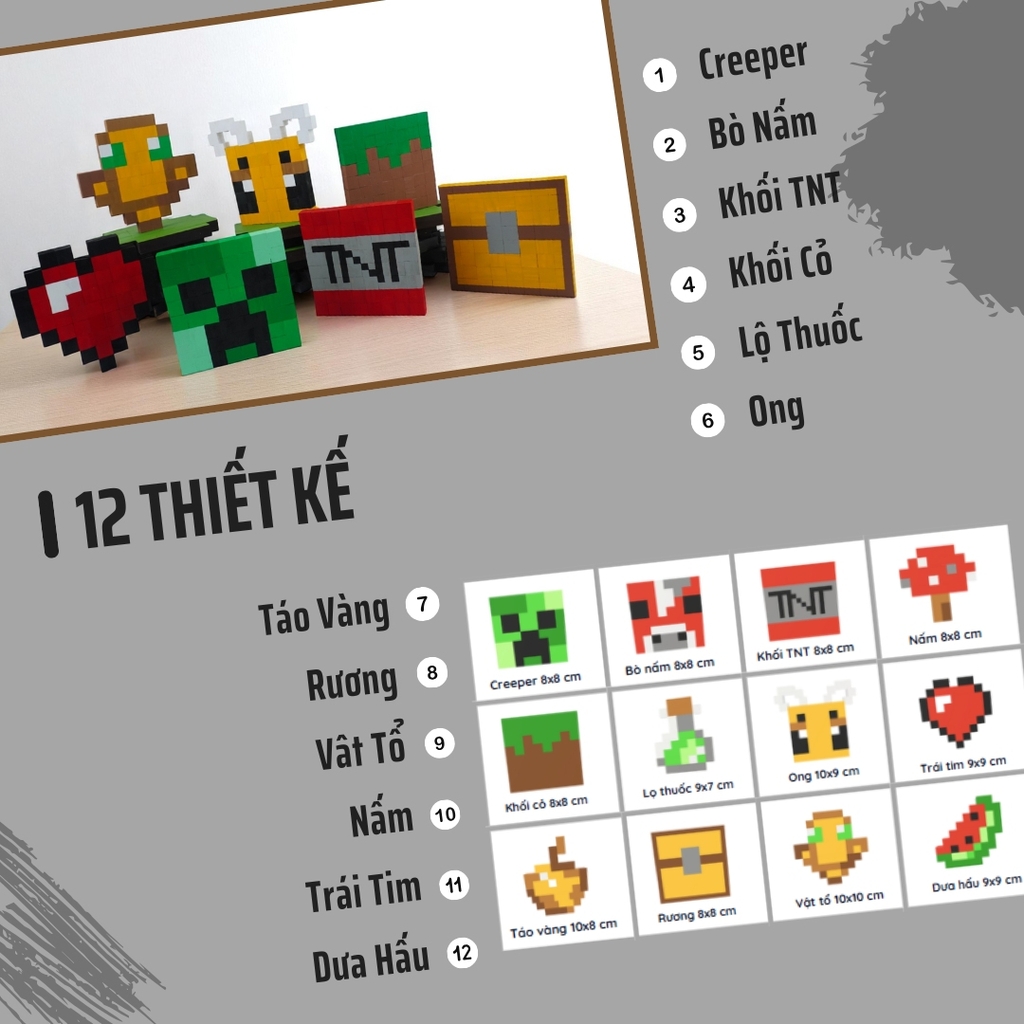 Bằng việc sử dụng gỗ nhỏ (1x1x1 cm) sẽ giúp làm được nhiều mẫu vật phẩm hơn, dễ thao tác hơn so với bộ sử dụng gỗ to (2x2x2 cm). Mô hình sau khi hoàn thành nhỏ xinh, phù hợp trưng bàn học, bàn làm việc hoặc treo tường.