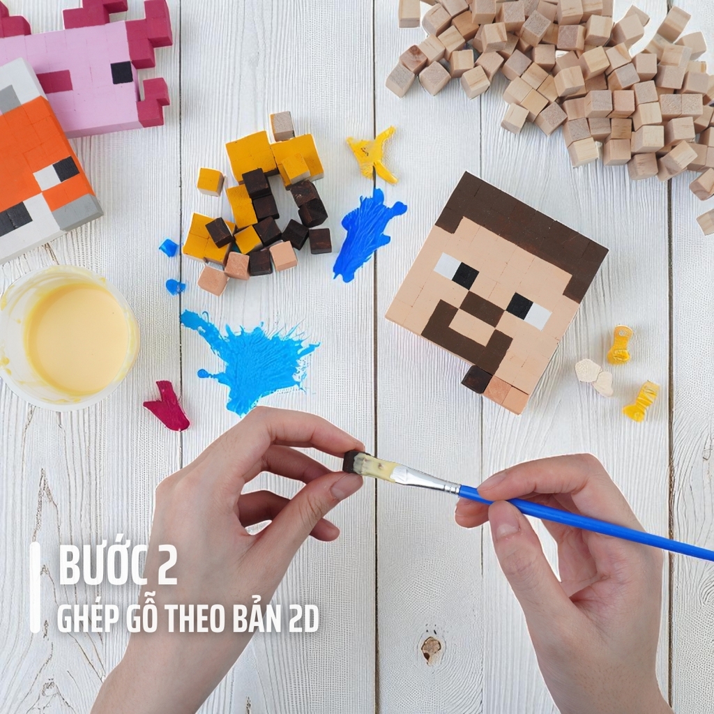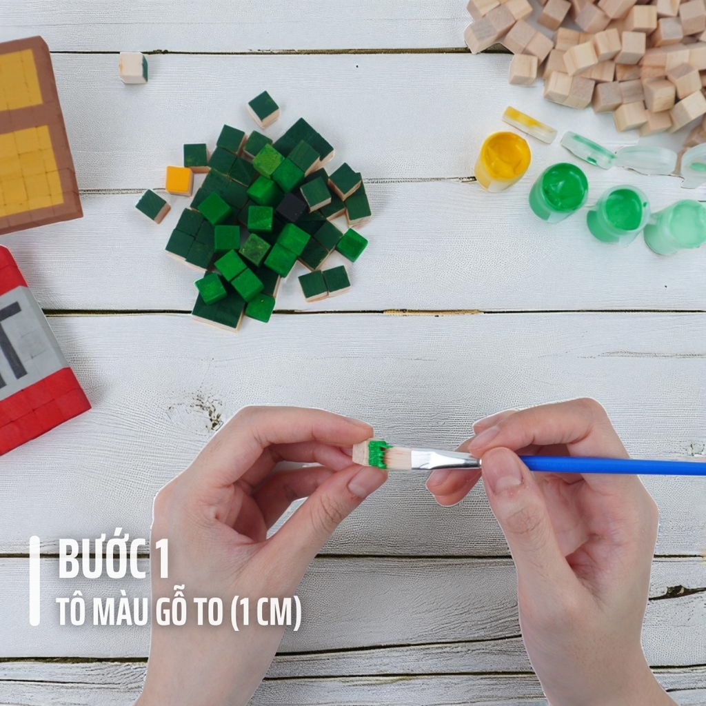 Bộ Chế Tạo 6 Mô Hình Minecraft Decor Phẳng THU NHỎ (sử dụng gỗ nhỏ 1x1x1 cm) là sản phẩm thuộc dòng STEAM DIY, được sản xuất thủ công bởi 1x1 Studio. Sản phẩm cho phép bạn tạo ra 6 vật phẩm trong 12 mẫu chỉ với 2 bước DIY: tô màu gỗ & lắp ghép gỗ.
