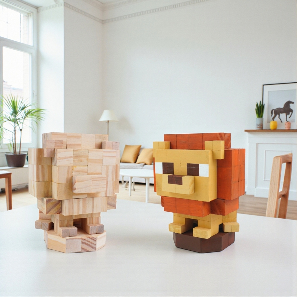 DIY Kit Tô Màu Mô Hình Sư Tử được sản xuất thủ công bởi Xưởng 1x1. Sản phẩm gồm mô hình mộc, màu pha sẵn, cọ. Người dùng dễ dàng hoàn thiện sản phẩm với bản hướng dẫn bằng giấy hoặc trải nghiệm thú vị như chơi game với bản hướng dẫn điện tử xoay 360°.