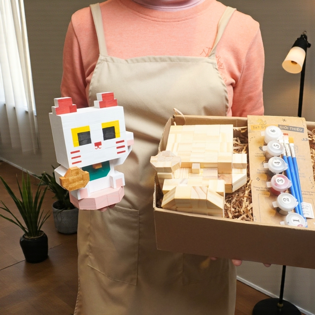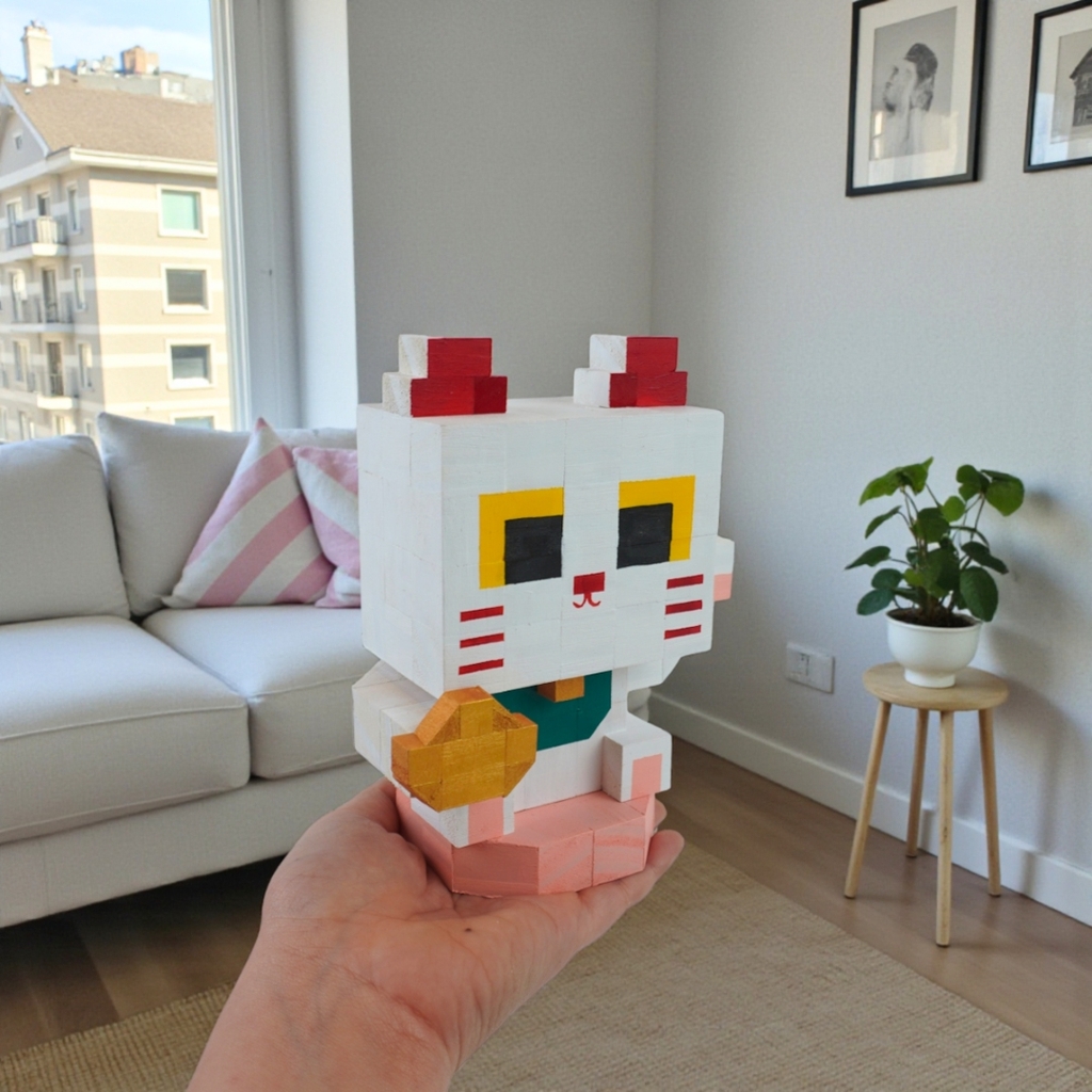 Mô Hình Gỗ Mèo Thần Tài Maneki-neko được thiết kế theo phong cách Pixel Art. Sản phẩm được làm thủ công bằng gỗ, tô sẵn bởi các họa sĩ Xưởng 1x1. Sản phẩm phù hợp trang trí, sưu tập, quà tặng lưu niệm.