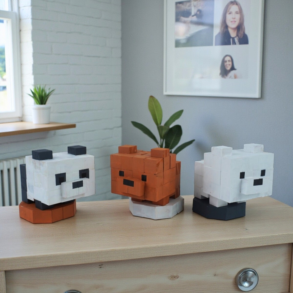 Mô Hình Gỗ Gấu Tuyết Grizzly (We bare bear) được thiết kế theo phong cách Pixel Art. Sản phẩm được làm thủ công bằng gỗ, tô sẵn bởi các họa sĩ Xưởng 1x1. Sản phẩm phù hợp trang trí, sưu tập, quà tặng lưu niệm.